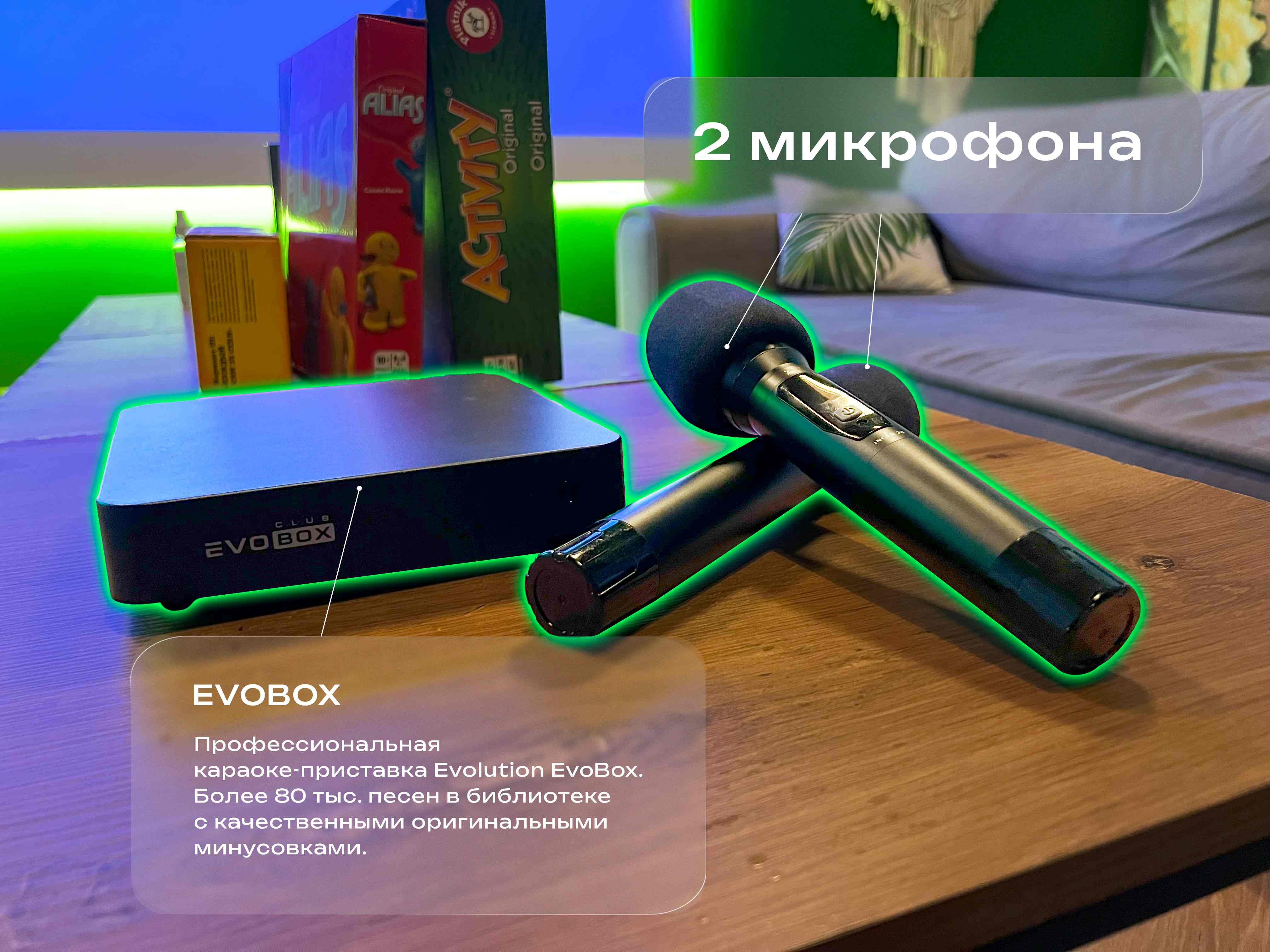 - Профессиональная караоке-приставка Evolution EvoBox. Более 80 тыс. песен в библиотеке