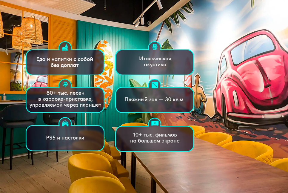 🔺Минимальная посадка от 10 до 15 человек. Доплата за каждого дополнительного гостя (сверх 10) - 780 рублей за все время посещения (в будни и в выходные). Также воспользуйтесь выгодными пакетными предложениями, куда будет включено украшение зала, еда и напитки. Рекомендуем бронировать зал заранее.