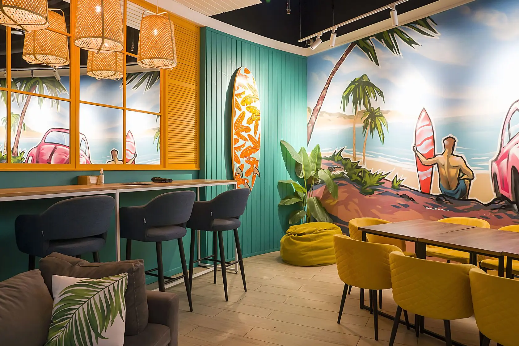Лофт «Лагуна» — это как дом серфера где-то на далёких островах: тёплый свет, расслабленная атмосфера, природные акценты и ощущение, что океан где-то совсем рядом. Здесь хочется забыть о времени, включить любимую музыку и просто быть. Идеально подойдёт для уютных встреч, неспешных разговоров и вечеров с атмосферой свободы и солнца.